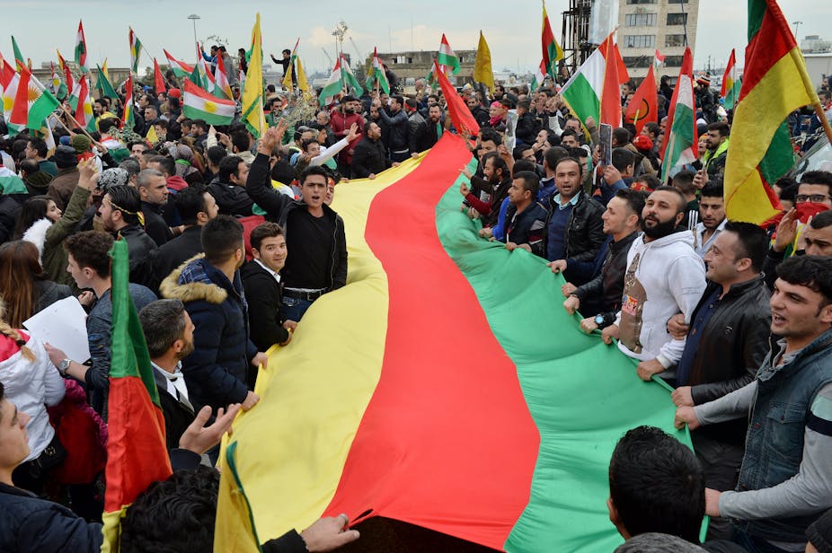 Kurdish protestors against the Turkish operation in Afrin outside the EU building in Lebanon on January 28. Wael Hamzeh/EPA