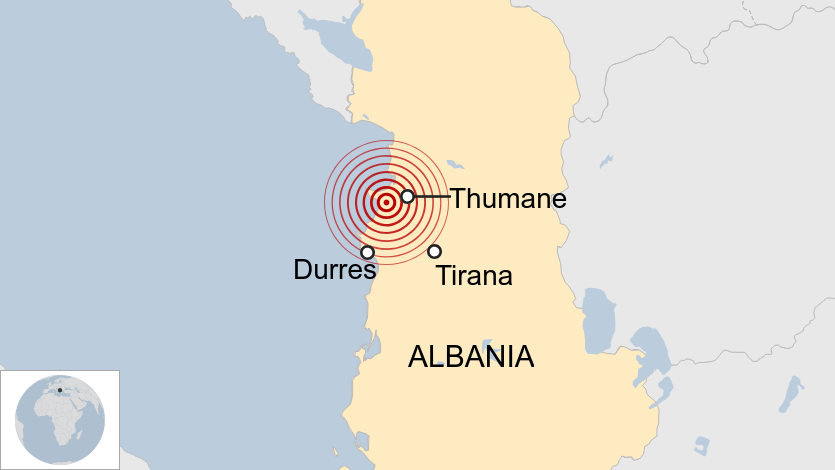 Three of those who died were in the town of Thumane, 40km to the north-west of Tirana and close to the epicenter. There are fears more people are trapped under rubble.