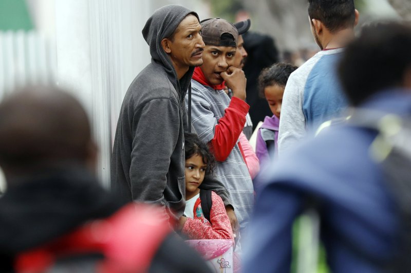 FILE – In this July 16, 2019, file photo, people wait to apply for asylum in the United States along the border in Tijuana, Mexico. A federal judge rules that the Trump administration is operating within its authority when separating families stopped at the Mexican border, rejecting arguments that it was quietly returning to widespread practices that drew international condemnation. (AP Photo/Gregory Bull, File)